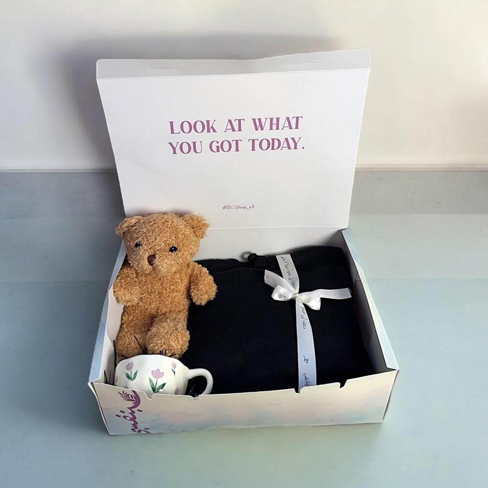 The "Winter Box" is the perfect gift to bring warmth and comfort during the cold days. It features a stylish black sweater that keeps you cozy in a chic way, along with a mug adorned with a beautiful floral design to add a touch of joy to your hot drinks. To complete the experience, it comes with a cute teddy bear that offers a sense of warmth and affection. This box combines elegance and comfort with a touch of charm, making it your ideal companion for the winter season.